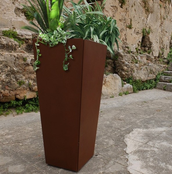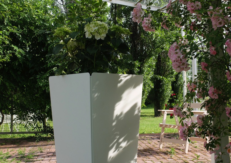 Le fioriere a colonna sono alte e affusolate, coniche a base quadrata, ideali per essere posizionate in angoli o accoppiate ad un ingresso per esempio.Si compongono di 4 lati in lamiera zincata verniciata opportunamente piegata, i 4 lati si assemblano avvitando viti e dadi all’interno. Il vaso di coltivazione interno è in ABS con riserva d’acqua ed è estraibile.
