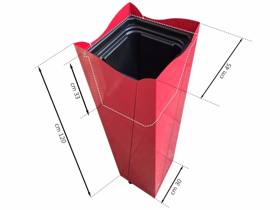 Le FIORIERE A COLONNA sono realizzate unendo 4 lamiere opportunamente tagliate e sagomate, zincate e verniciate a polvere. Le lamiere sono opportunamente tagliate e piegate al fine di formare con l’unione o forme coniche o forme a parallelepipedo, comunque sempre con base quadrata.Le 4 pareti possono essere di colore diverso, rivestite in tessuto (solo per interni) oppure una di queste pareti in acciaio inox spazzolato e le restanti verniciate.Viene inserito un vaso in ABS con riserva d’acqua.In dotazione 4 piedini regolabili.