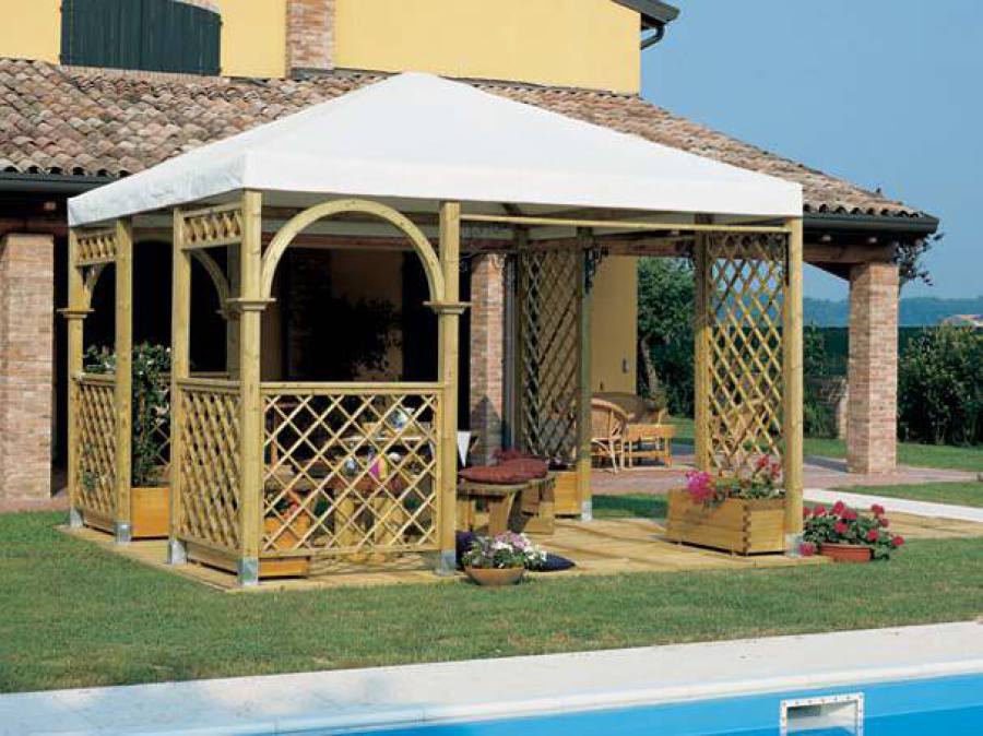Il gazebo in legno è una stanza in più nel tuo giardino, ideale per pranzare all’aperto, ricevere gli amici, e più in generale spostare all’esterno della casa tutte le attività che preferisci. Disponibile in diversi modelli e dimensioni, e con varie soluzioni di copertura, possono essere ulteriormente arricchiti con pavimentazioni in legno e accessori decorativi quali fioriere e grigliati in legno.La qualità dell’essenza è quella del Pino di Svezia o Abete nordico impregnato in autoclave con sali atossici.