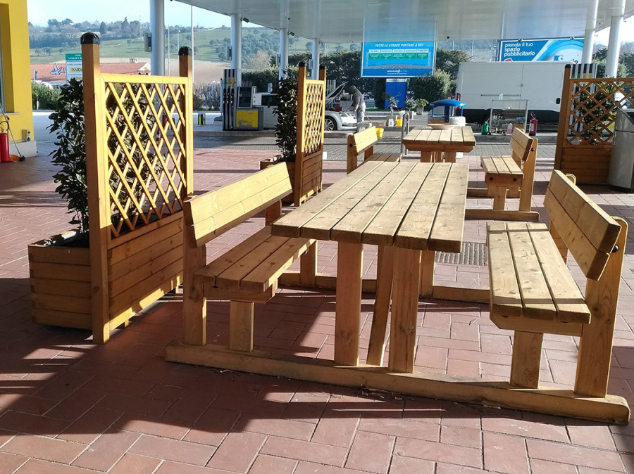 Panchine,Panche per pic nic,cabine da mare,cestini portarifiuti,bacheche per la comunicazione,cucce per animali